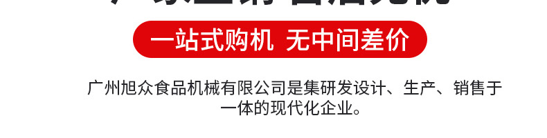 廣州旭眾食品機(jī)械有限公司是一家集科研開(kāi)發(fā),生產(chǎn)設(shè)計(jì),營(yíng)銷服務(wù)為一體的現(xiàn)代化生產(chǎn)企業(yè)。現(xiàn)代化生產(chǎn)車間,精湛制造技術(shù),所產(chǎn)機(jī)械歷經(jīng)市場(chǎng)重重考驗(yàn),不斷贏得海內(nèi)外客戶的贊譽(yù)。