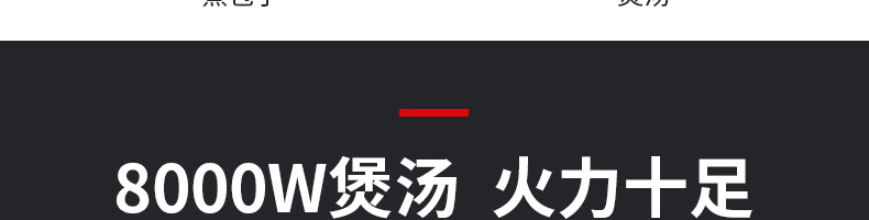 八千瓦平爐(磁控) XZ-KAM8C,八檔磁控,滿足各種烹飪。蒸煮燉煲炒,無(wú)明火模式。不同食材專屬火力、大功率、高效率。8000W煲湯火力十足具有聚能技術(shù),大面積均速加熱,輕松制作美食。