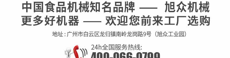 廣州旭眾食品機械有限公司是一家集科研開發,生產設計,營銷服務為一體的現代化生產企業。現代化生產車間,精湛制造技術,所產機械歷經市場重重考驗,不斷贏得海內外客戶的贊譽。