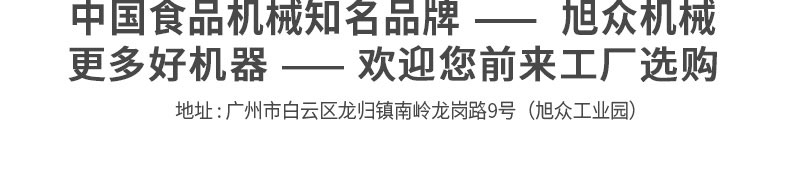 廣州旭眾食品機(jī)械有限公司是一家集科研開發(fā),生產(chǎn)設(shè)計,營銷服務(wù)為一體的現(xiàn)代化生產(chǎn)企業(yè)。現(xiàn)代化生產(chǎn)車間,精湛制造技術(shù),所產(chǎn)機(jī)械歷經(jīng)市場重重考驗(yàn),不斷贏得海內(nèi)外客戶的贊譽(yù)。